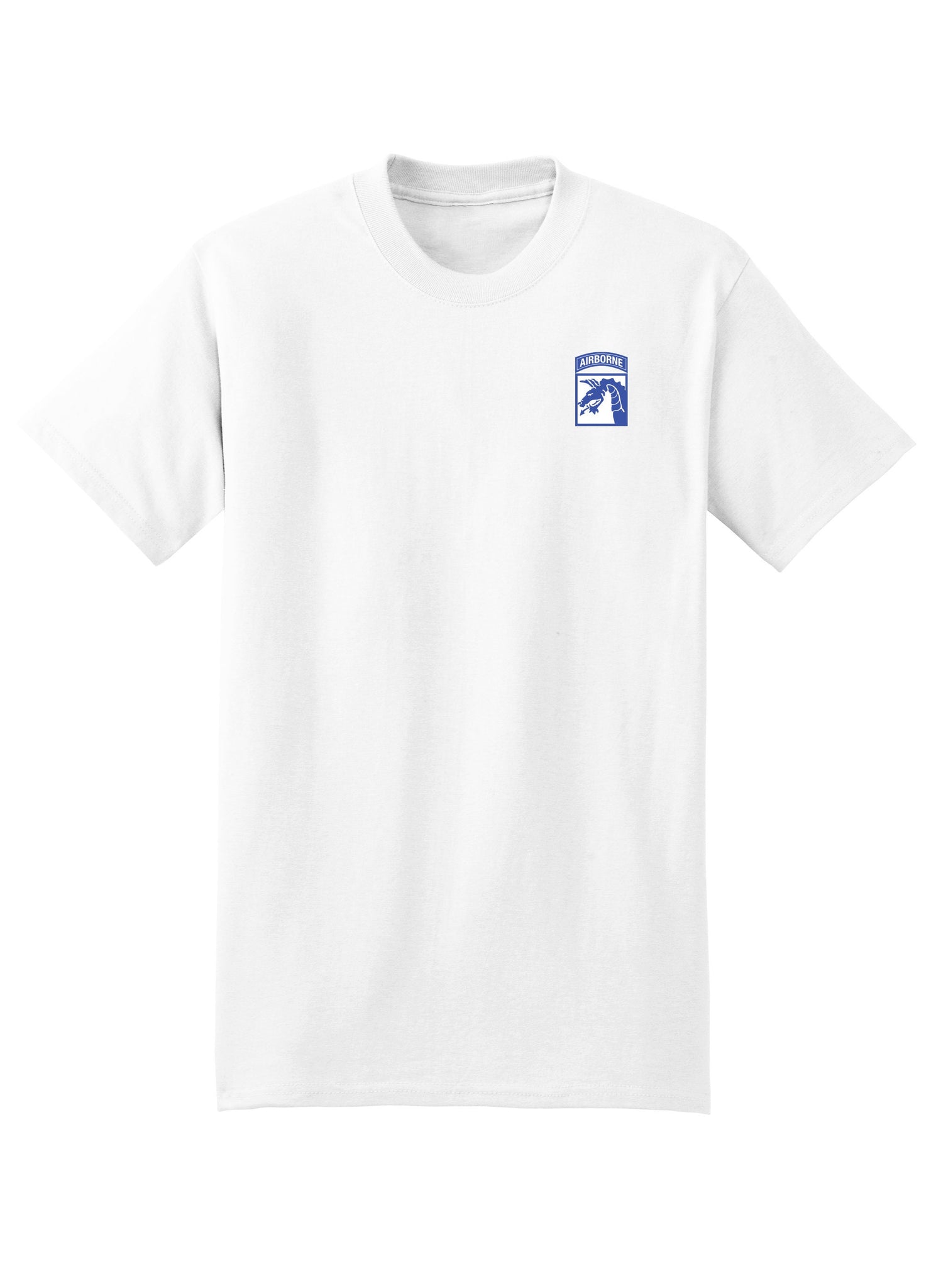 Celebrate your XVIII Airborne Corps pride with our specially designed T-shirt, featuring a vibrant color unit patch printed on the left chest. Crafted for comfort and style, this T-shirt is an emblem of honor and dedication, perfect for everyday wear.